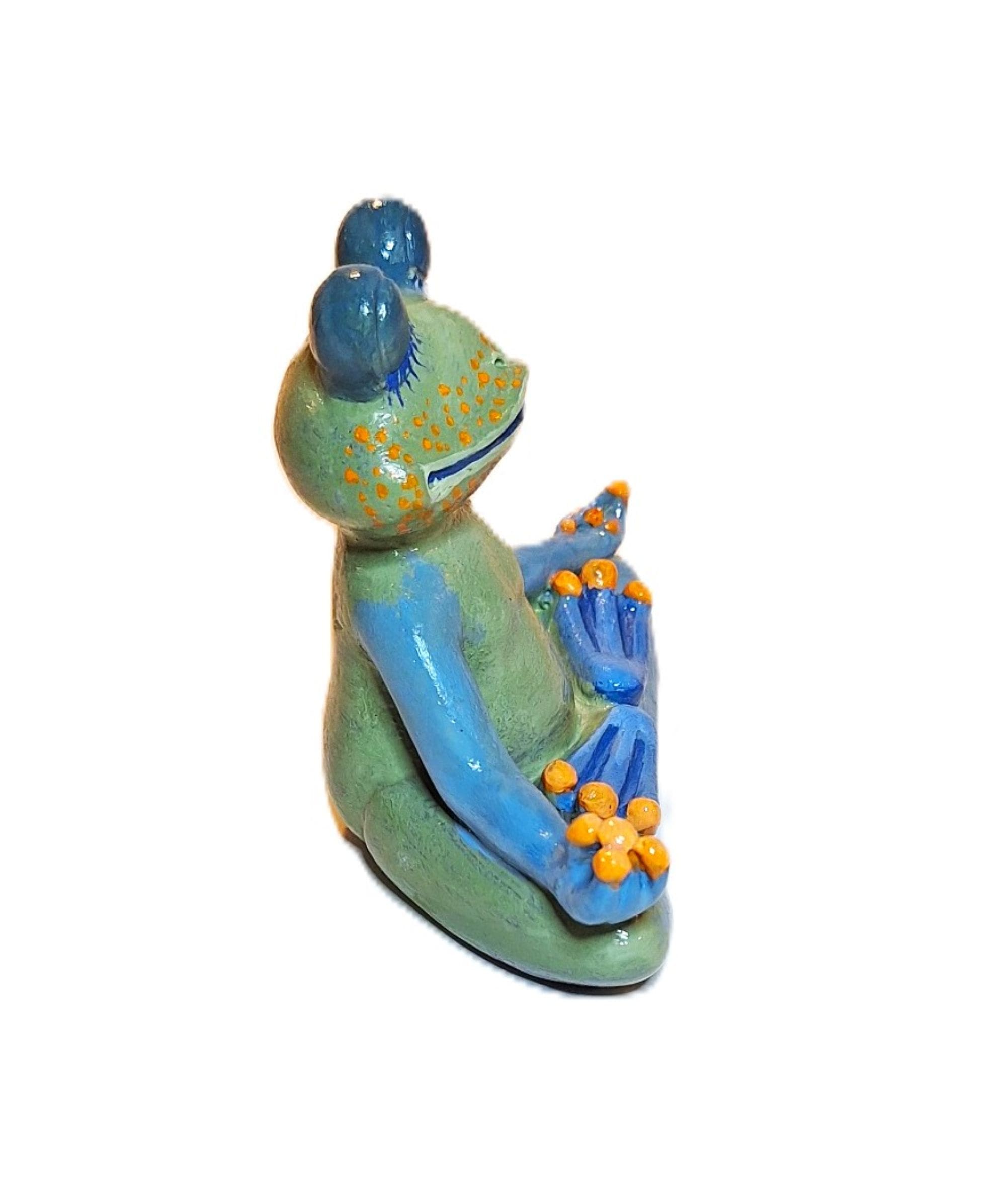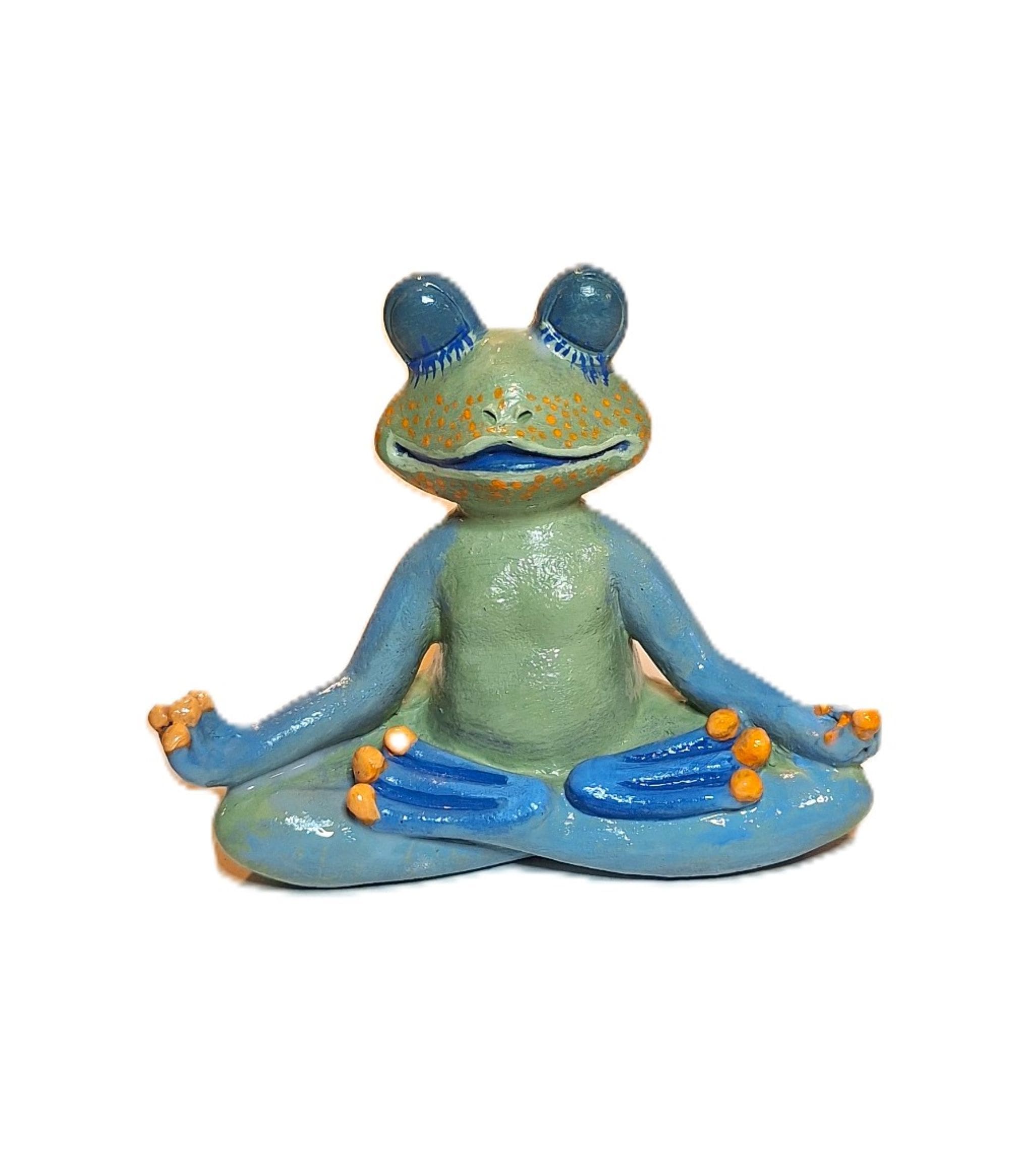 Tranquility Buddha Meditation Frog Meadow Calm, Hand Painted Colorful Statue.