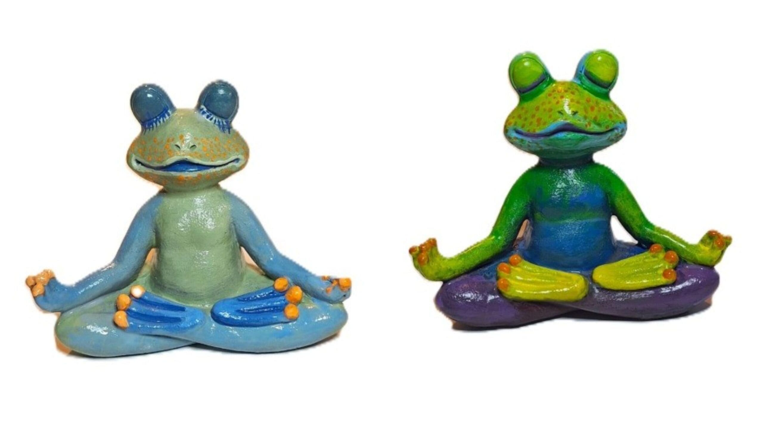 Bring harmony, color, and personality to your home or garden with this beautifully hand‑painted pair of Zen Yoga Frog statues — Meadow Calm and Sunrise. Each frog is crafted with detailed shading, expressive features, and a peaceful meditative pose that adds charm to any space.