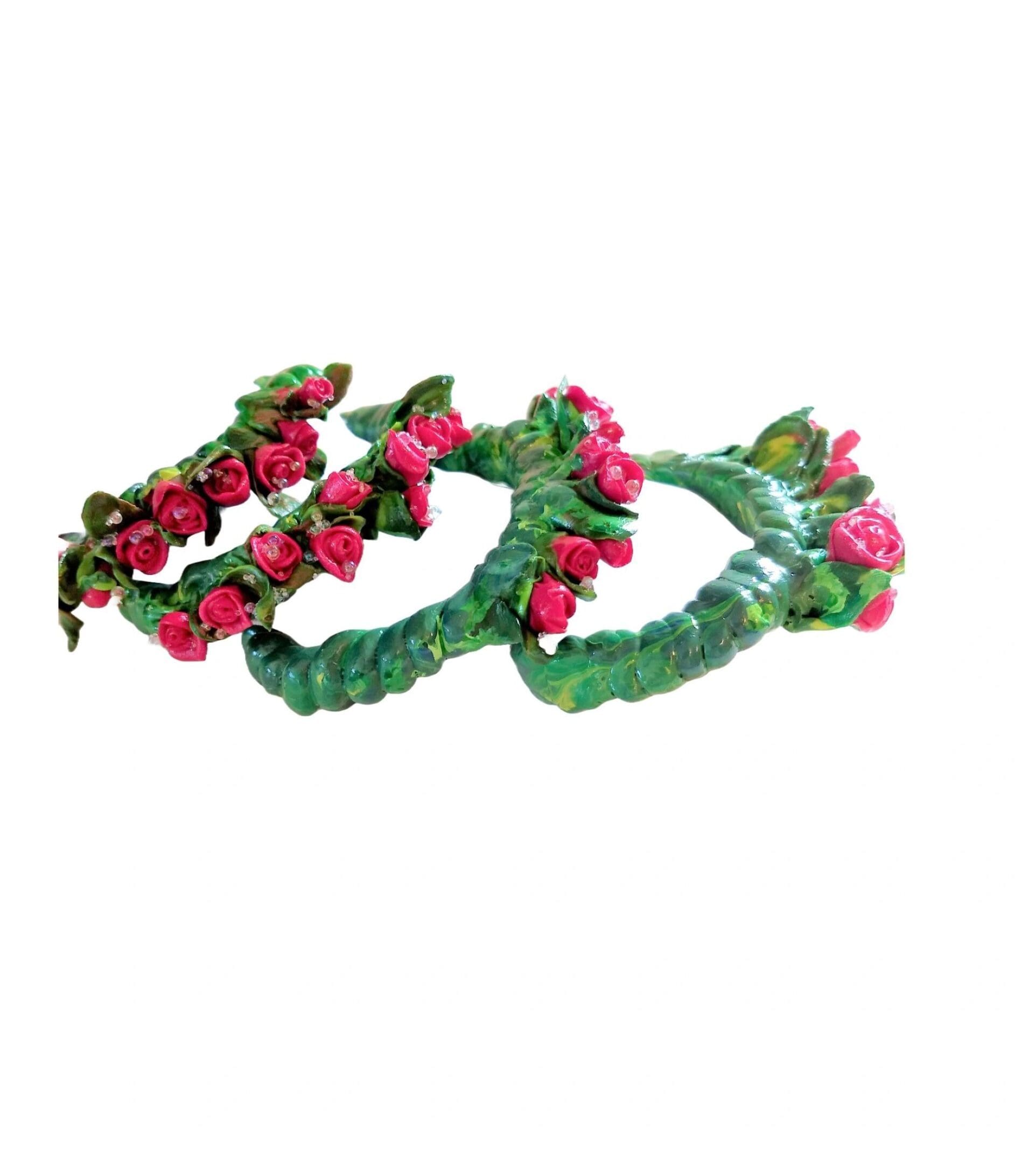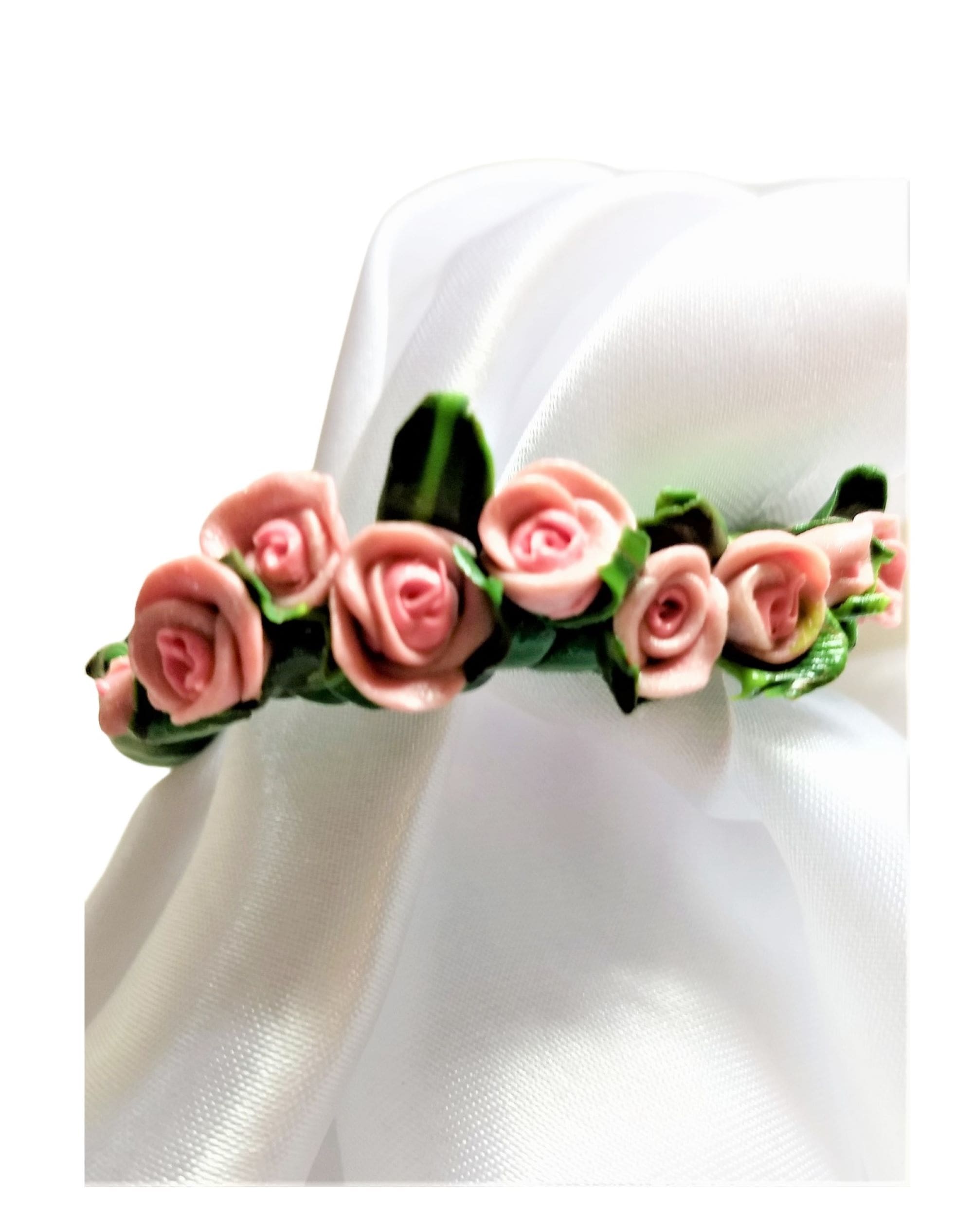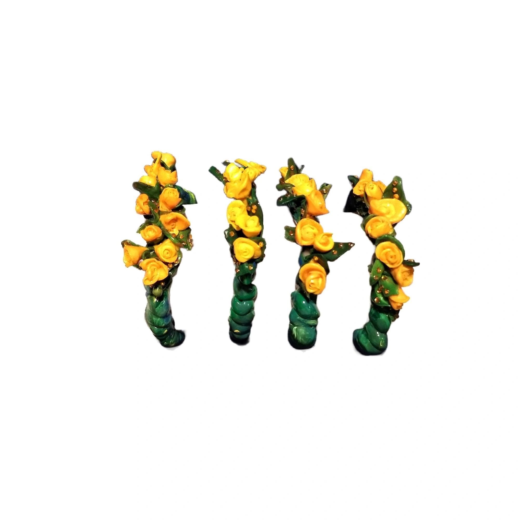 These baby roses napkin rings set of 4 do match the candle vines which are sold separately. The rose napkin rings can also be ordered in red, pink or yellow roses. They look elegant and classic but not too formal. Fit well with cotton or paper napkins. Silk napkins not recommended. Made of nontoxic polymer clay, ceramic with non toxic glaze. They rinse clean. Do NOT place in dishwasher. microwave or oven. Gar-Zen Botanical Design Studio in Florida. Custom orders are welcome. Any order over 10 sets, allow 3 weeks. We can do replacements or exchanges just contact us.