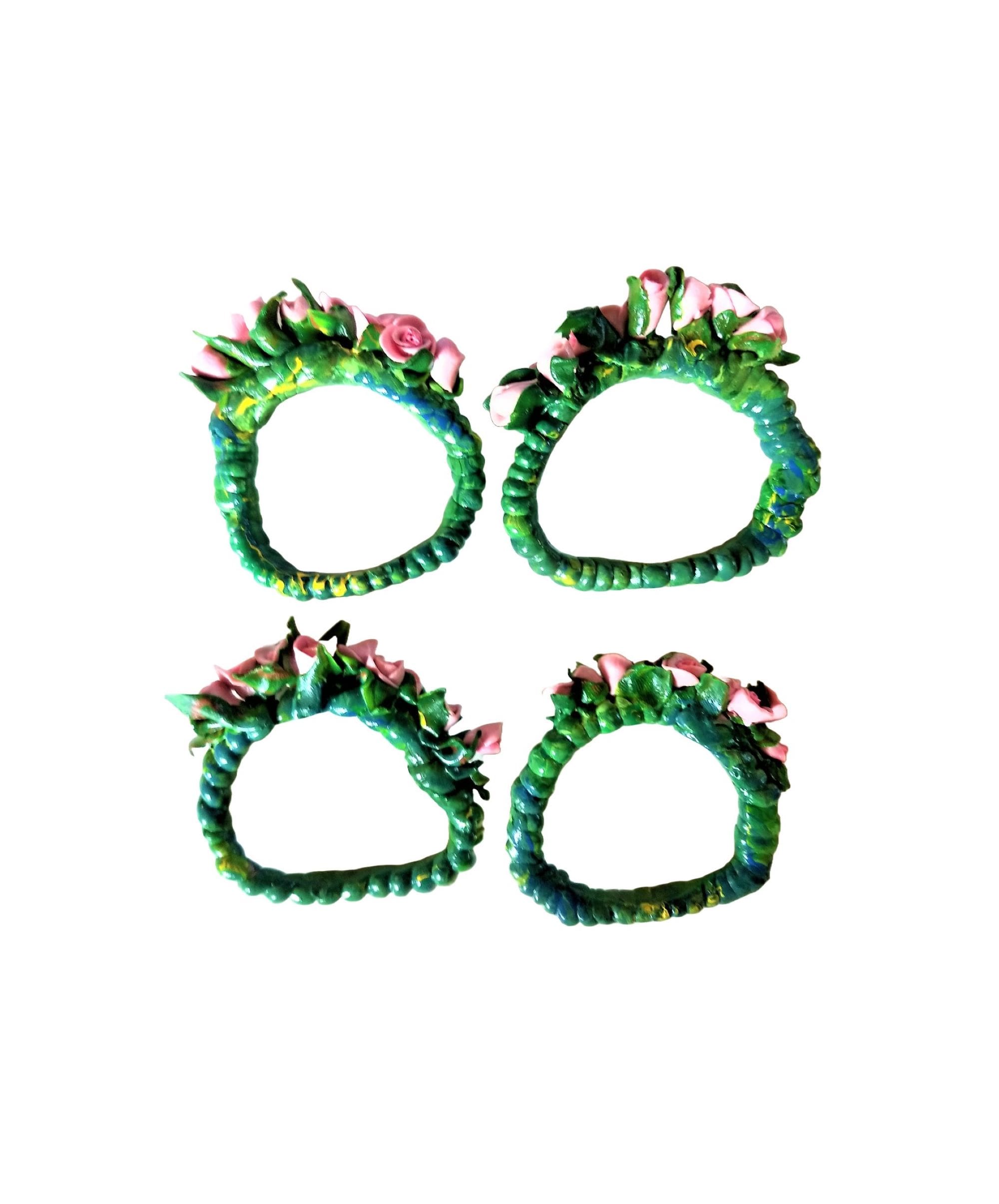 Ceramic Rose Napkin Rings Set of 4 Made in the USA.
