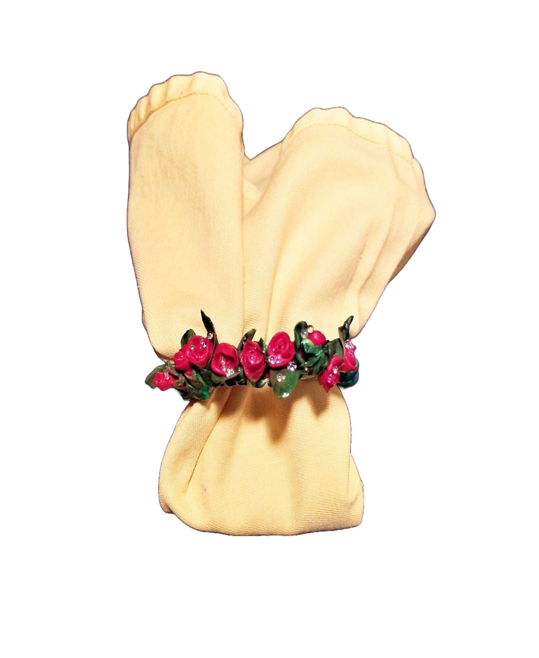 Ceramic Red Tea Roses Napkin Rings Set of 4 Made in the USA and ship within 24 hours. These rings fit any cotton cloth napkin. (Napkins NOT included) We are offering these in red, yellow or pink baby tea rose napkin rings.