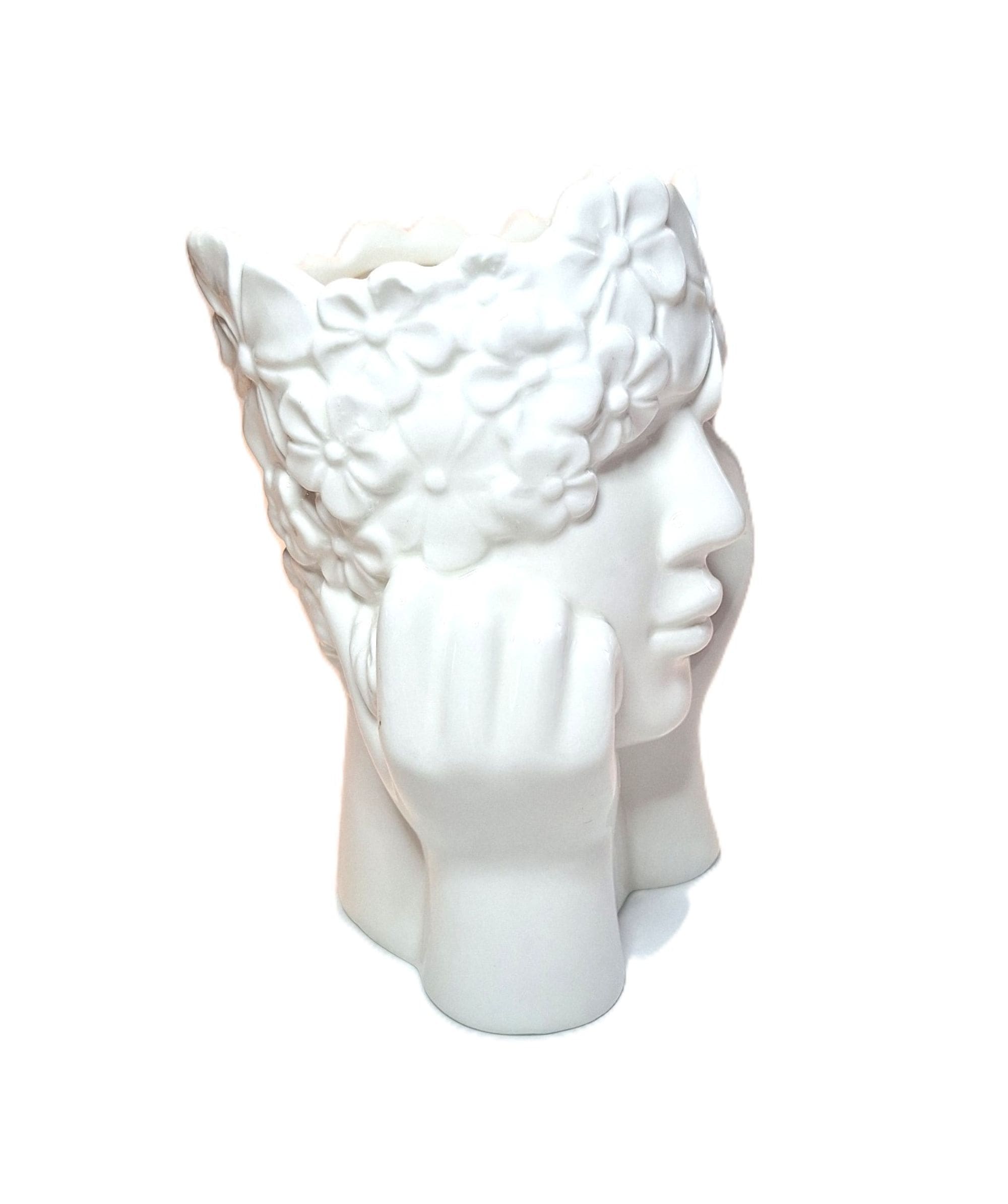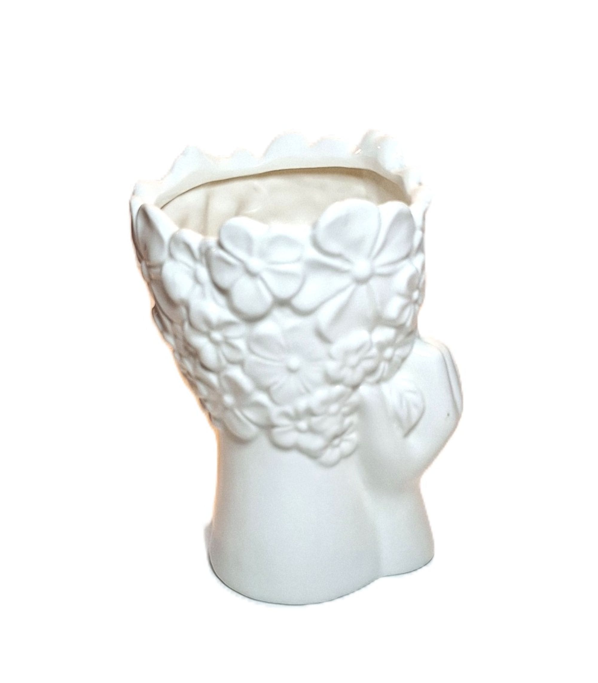 Ceramic Woman White Face Vase with Floral Crown