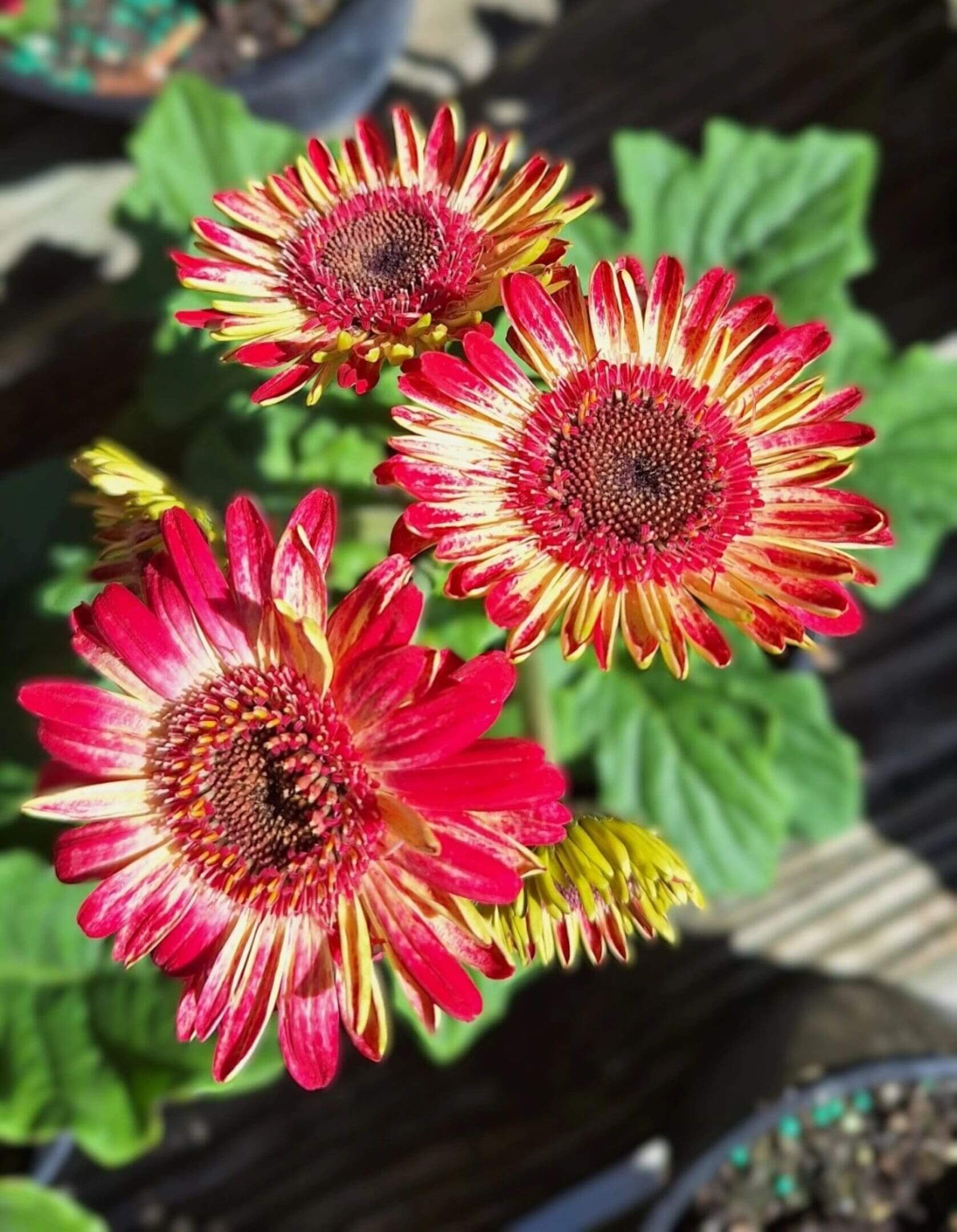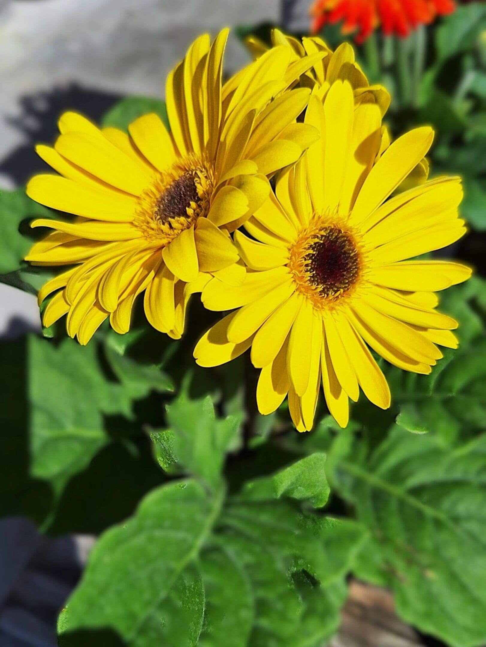 | Bright flowers | large daisies that are 3 inch in diameter |