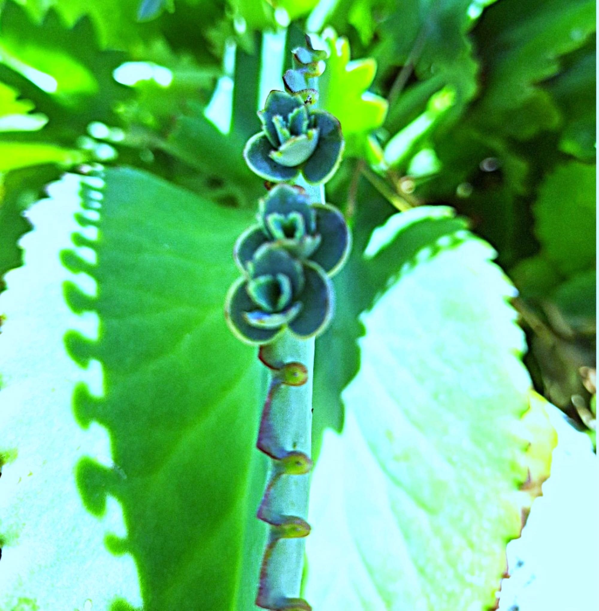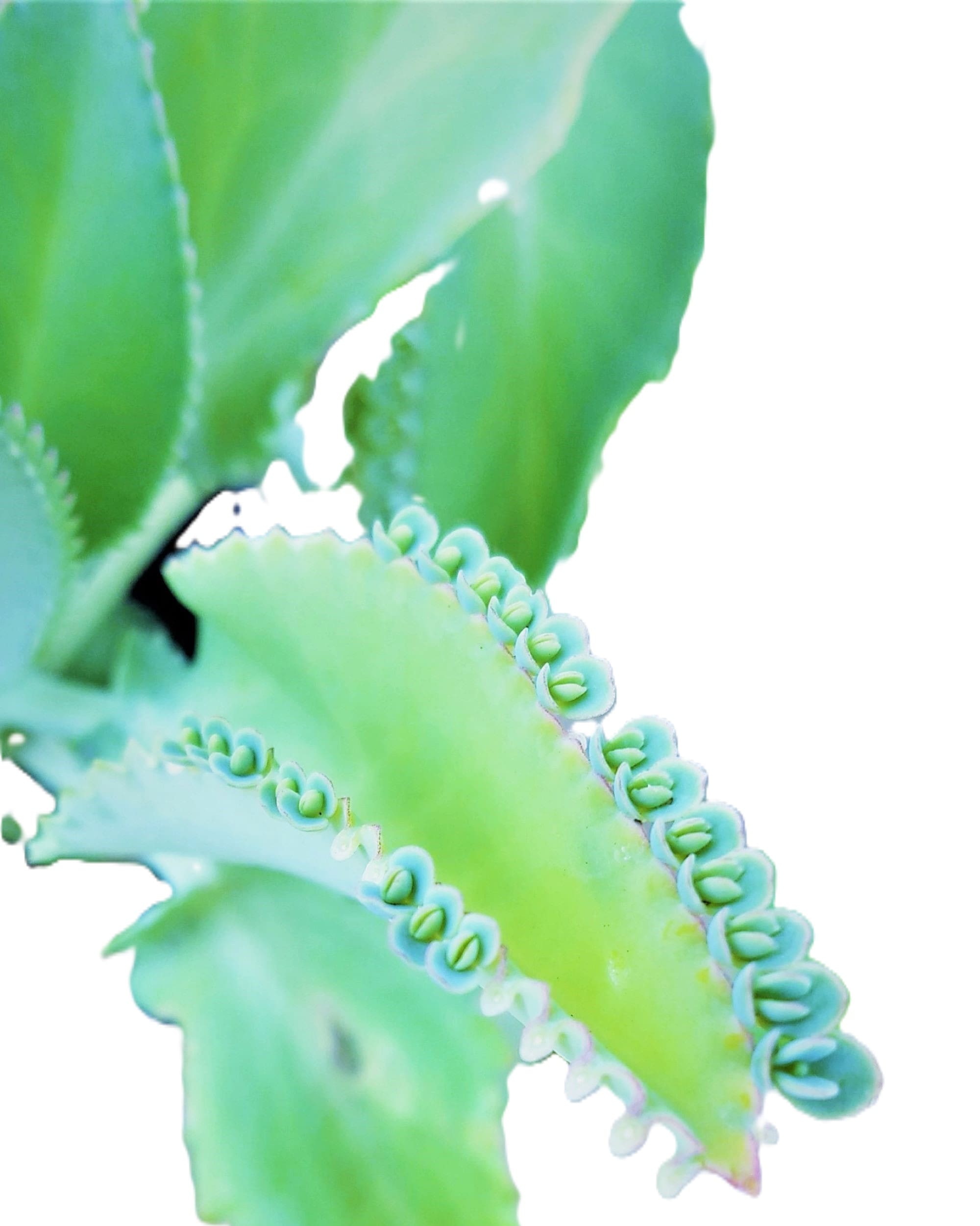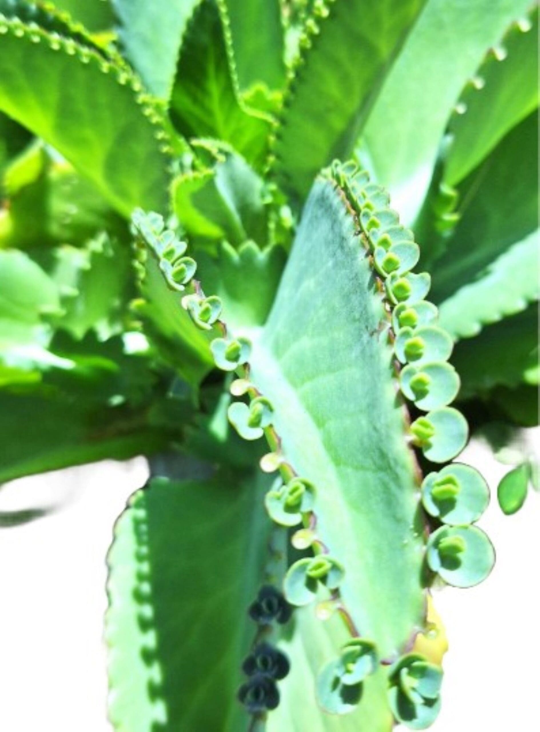 • Blue‑Green Velvet Leaves with Baby Plantlets This unique succulent produces tiny plantlets along the leaf edges, a signature feature of the mother of Thousands.
