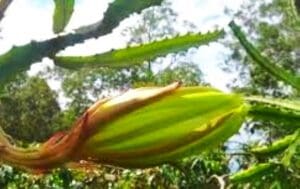 Heat and full sun plant, blooms at night and has a fragrant large white flower before it bears fruit. Dragon fruit can be planted as ornamental plants, but they do bare delicious fruit that is rather tasty. In fact, it is often used in jams, ice cream, fruit juice, and wine. Dragon fruit or pitayas are extremely unique plants regardless of the type of dragon fruit that you are growing, the fruit will be green until it is ripe. At that time, it will be bright red. The inside pulp of each piece of fruit will be filled with small seeds that look similar to those that can be found in a kiwi fruit.