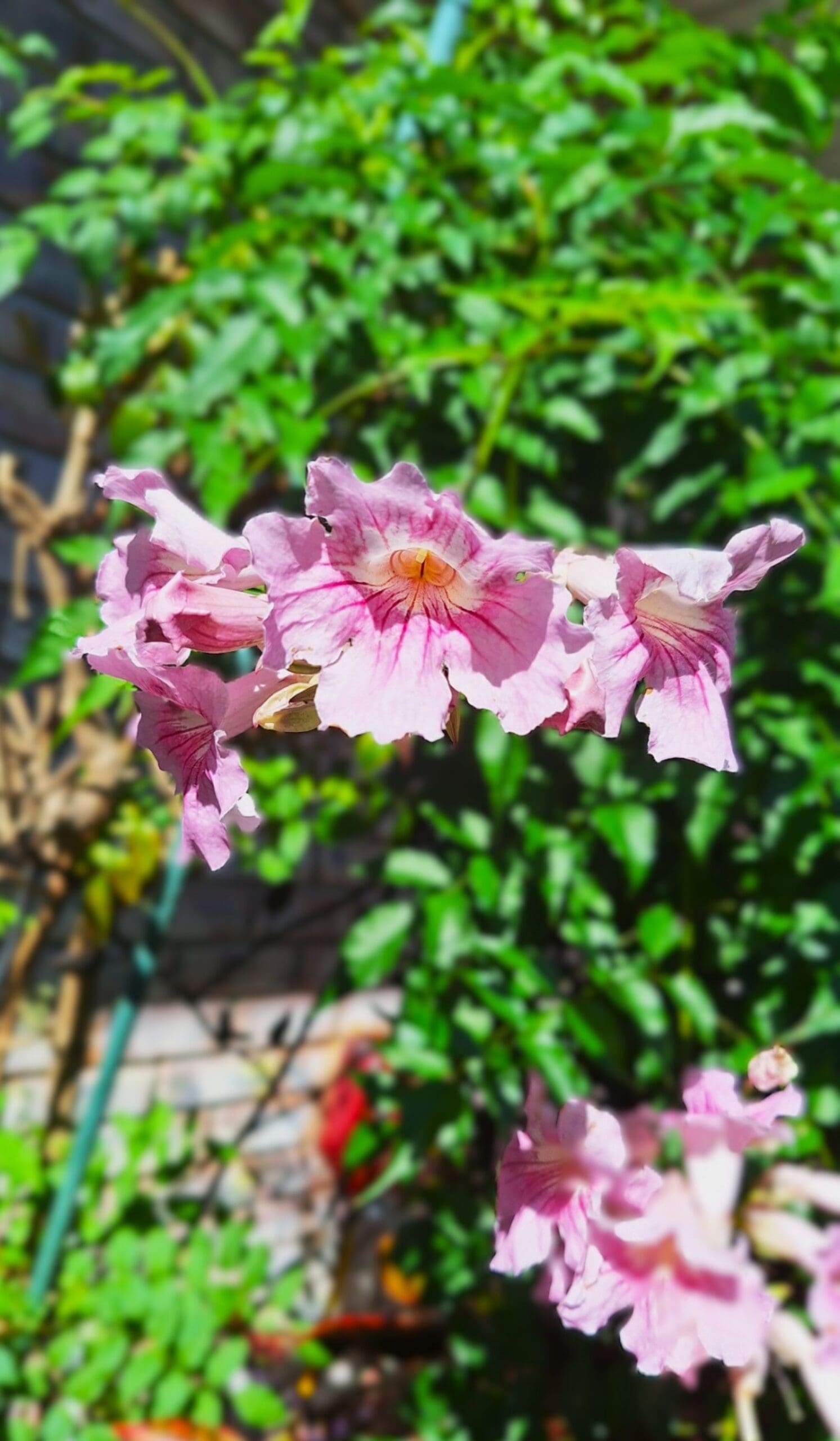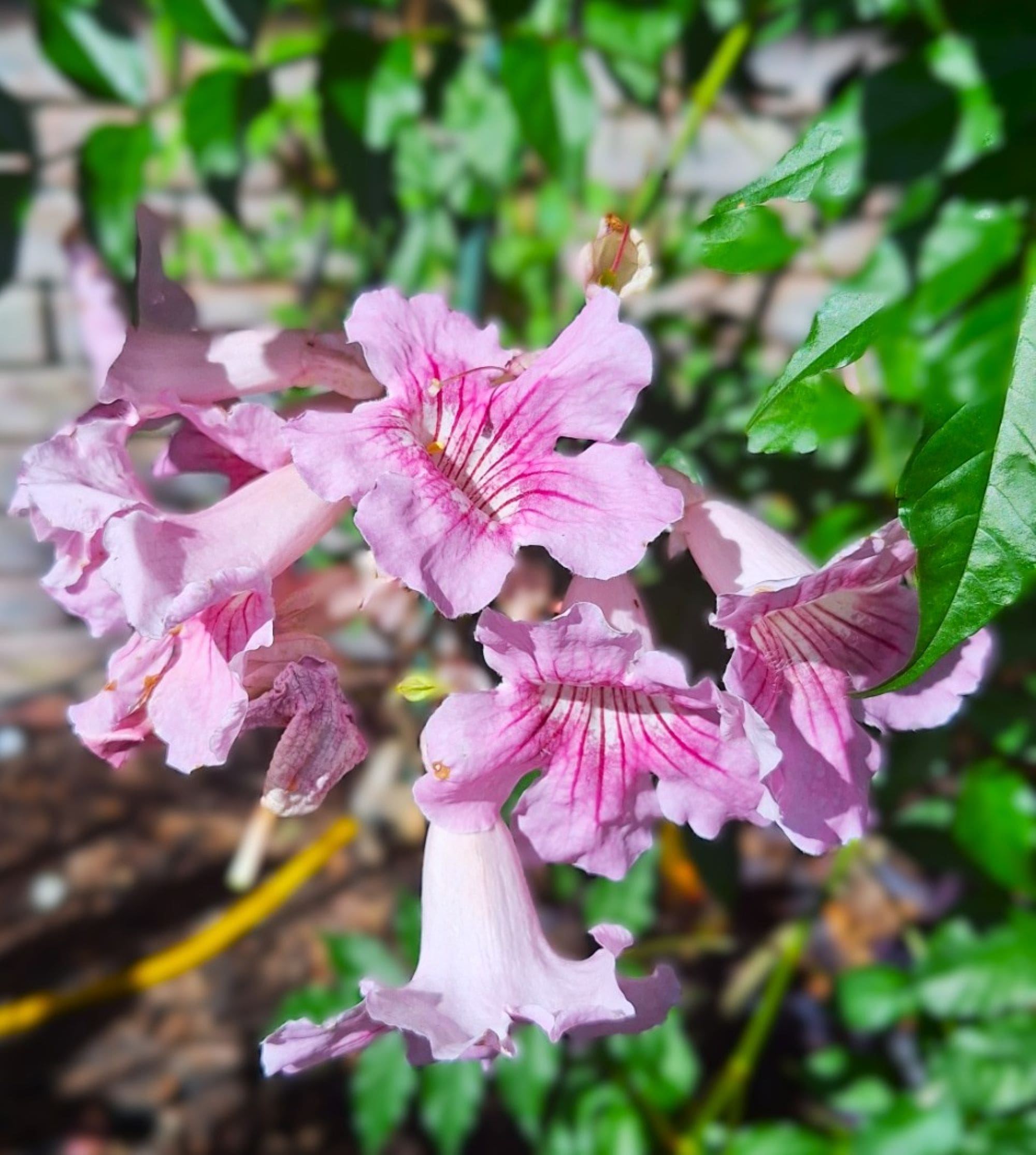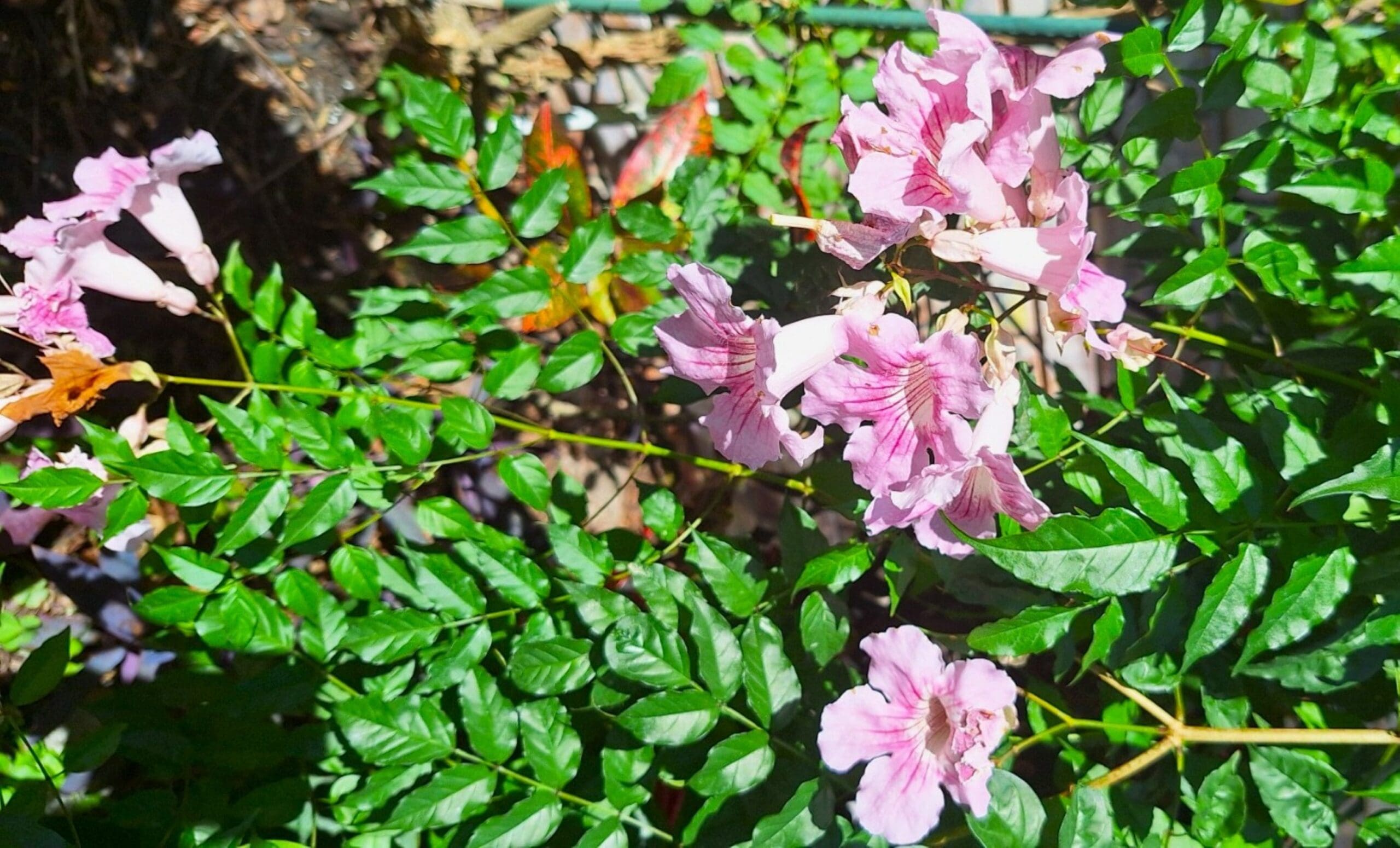 🌸 Queen of Sheba Pink Trumpet Vine (Podranea ricasoliana) A stunning, vigorous flowering vine known for its soft pink trumpet blooms with deep magenta veining. This is a fast‑growing, heat‑loving climber perfect for trellises, fences, pergolas, and mailbox posts.
