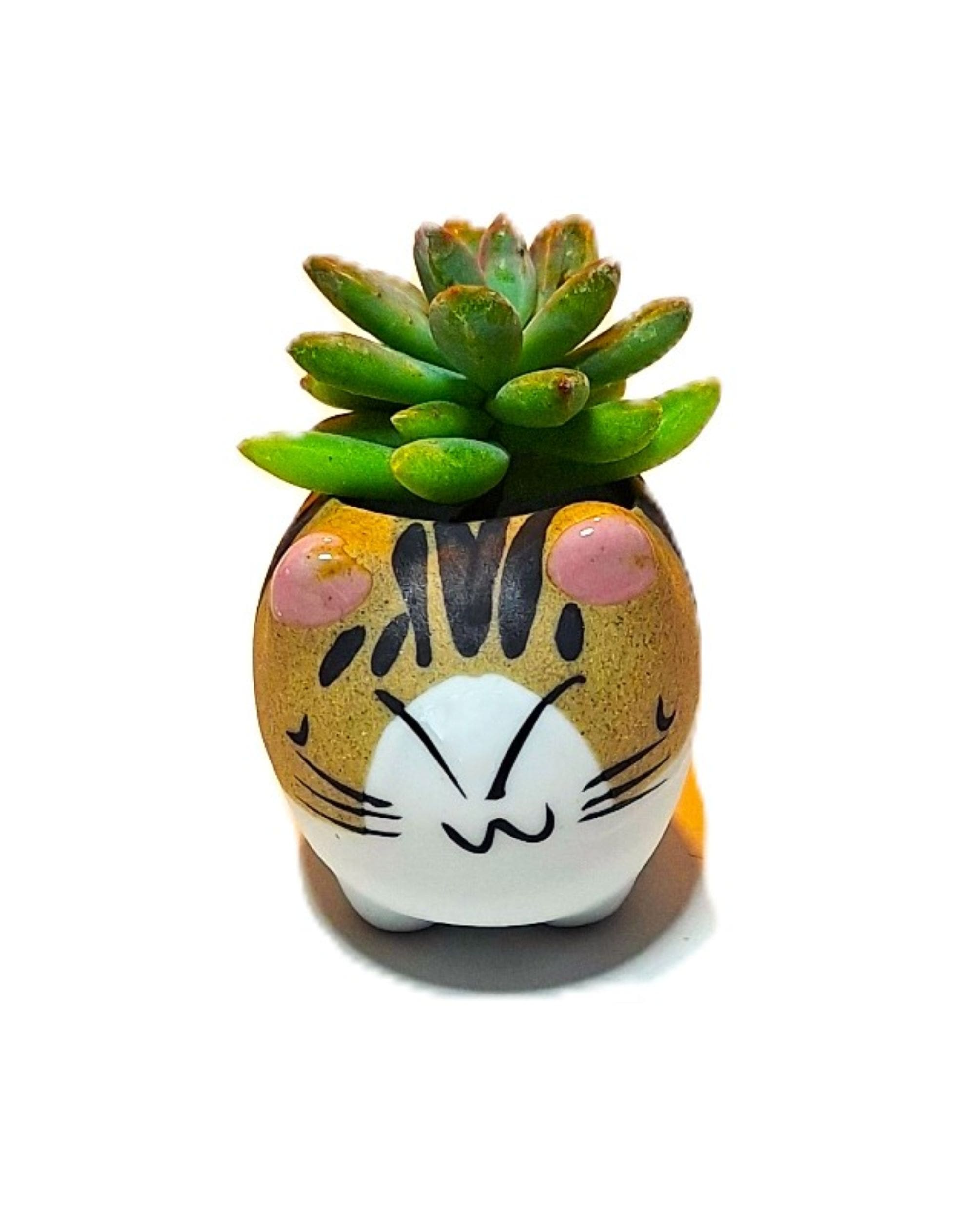 - Adorable Tiger Kitty Design: Each mini planter features a unique hand-painted tiger expression that adds instant charm and personality to any space