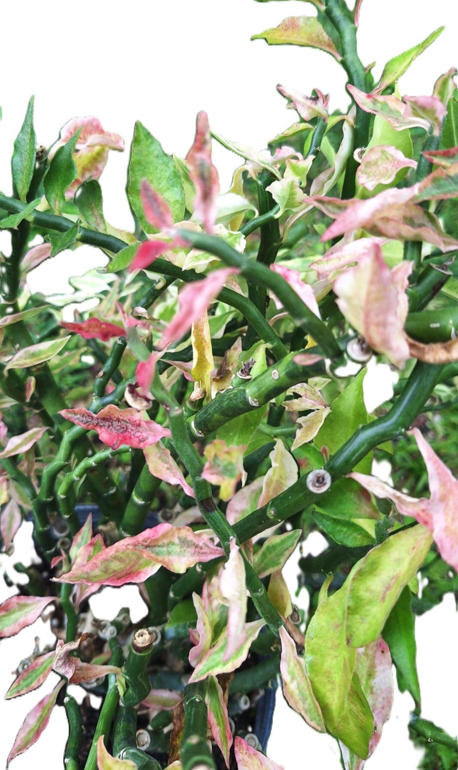 Unusual Variegated Devil’s Backbone Zig Zag Plant with unique zig‑zag stems and bright white‑green foliage; a hardy 10-inch tropical houseplant grown fresh in Florida and shipped safely. Gar-Zen Botanical Designs ships all products within 24 hours.