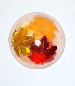 A handcrafted Autumn Leaves Soap Set featuring 6 clear vegan glycerin rounds with floating fall leaves in warm red, orange, and gold tones. Gentle, moisturizing, and perfect for seasonal décor, gifts, or fall‑themed bathrooms.